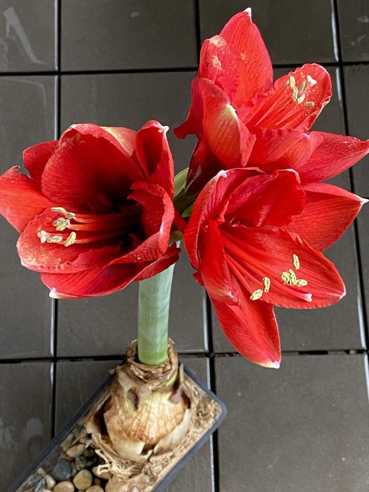 タマネギのような形と大きさの球根にはこんな見事なお花の生命力が宿っているのですね😄