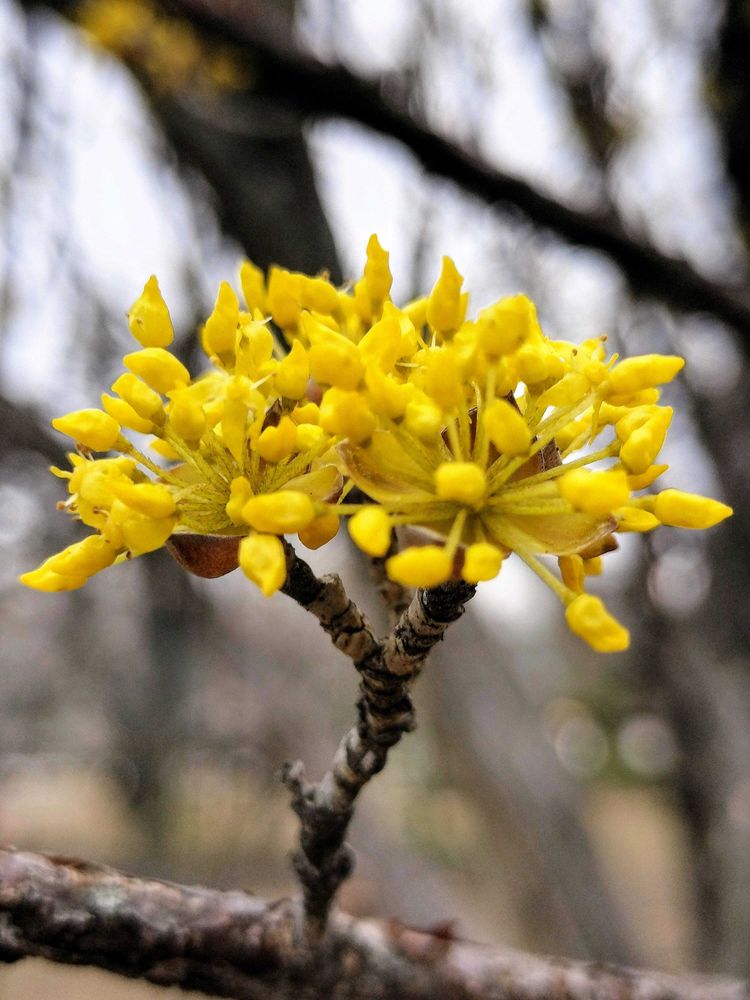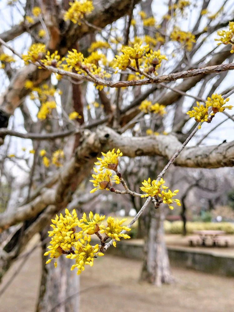 公園のサンシュユが咲き出しました✨☀️✨❇️