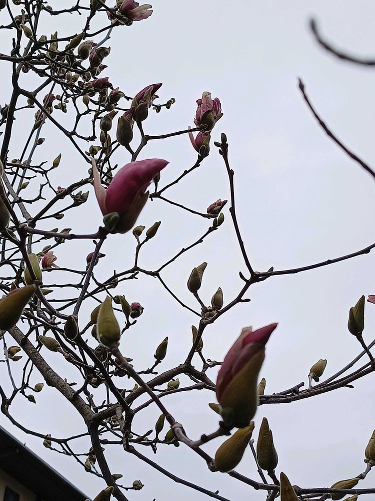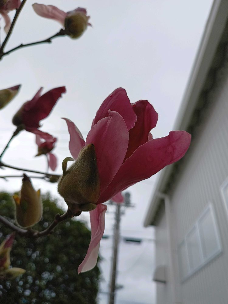 紫木蓮とハクモクレンの交雑なのに紅色が強くなるのが不思議〜