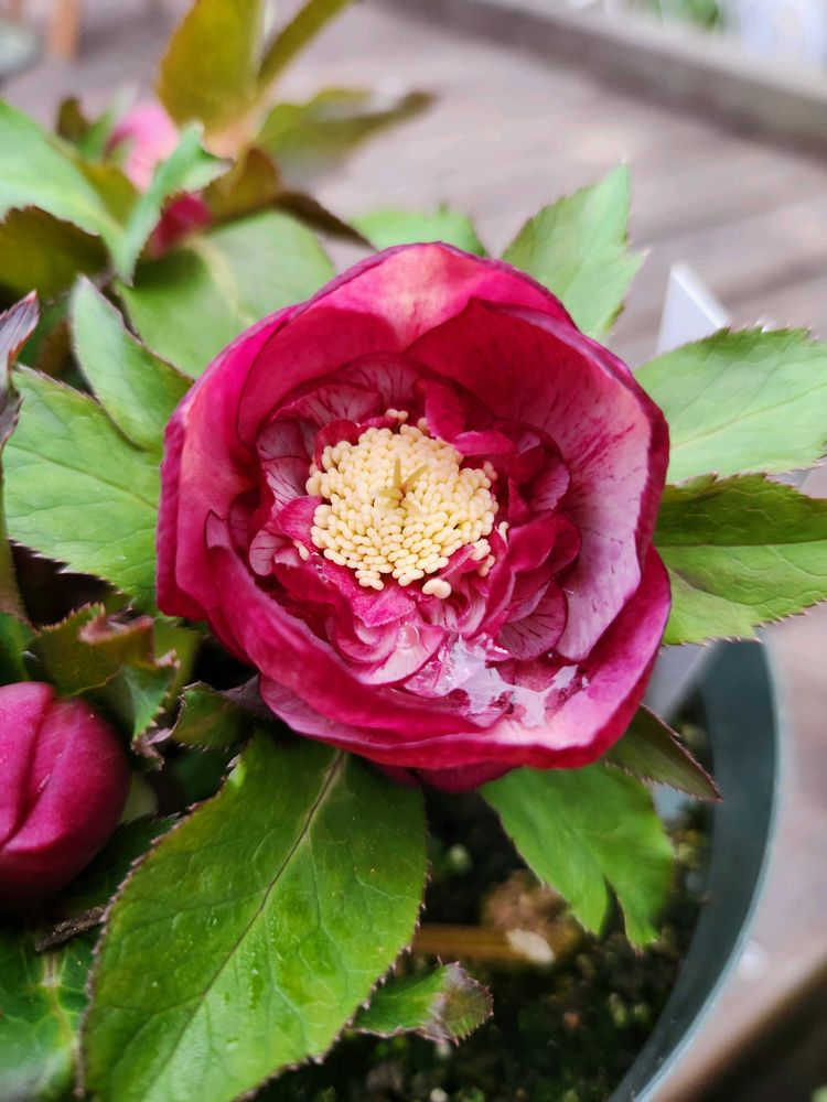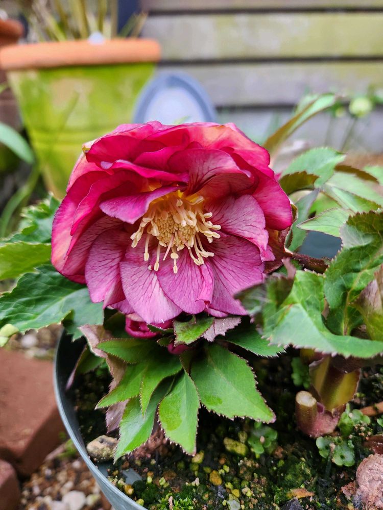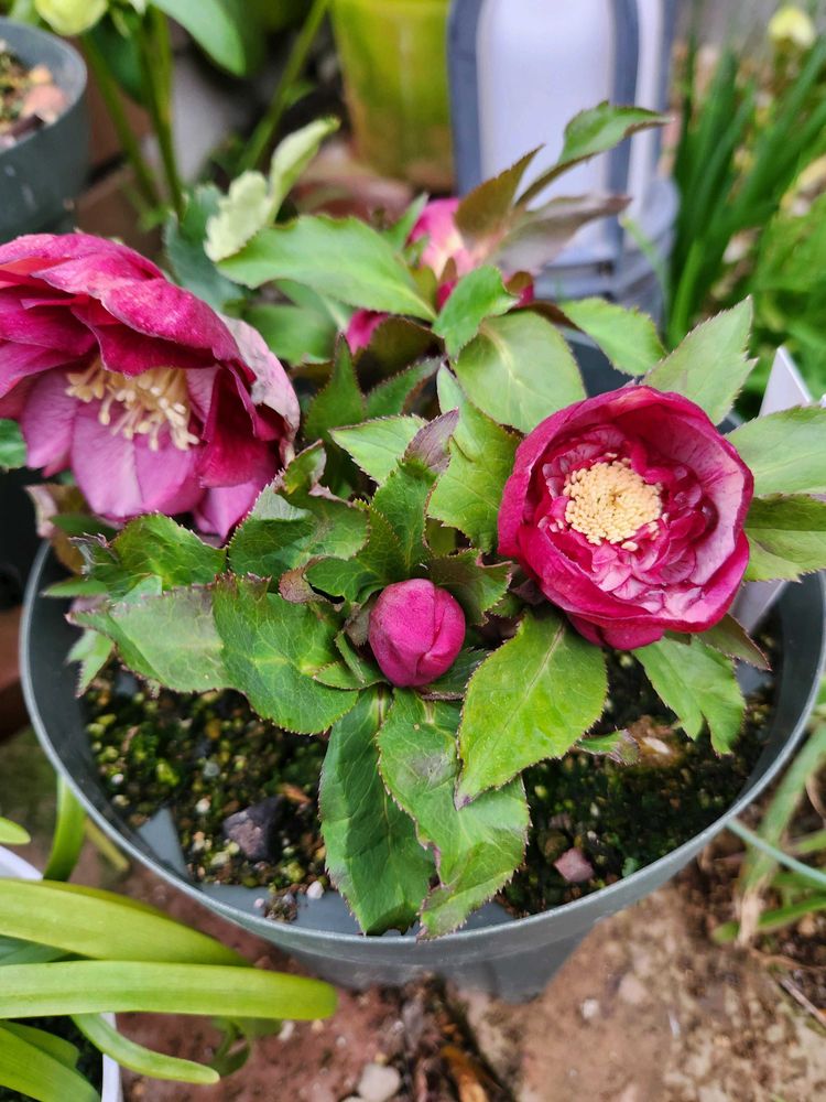 今朝のクリスマスローズは、ネオンセミダブル、花丈短く咲いています。セミダブル可愛い〰️〰️。