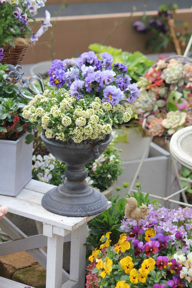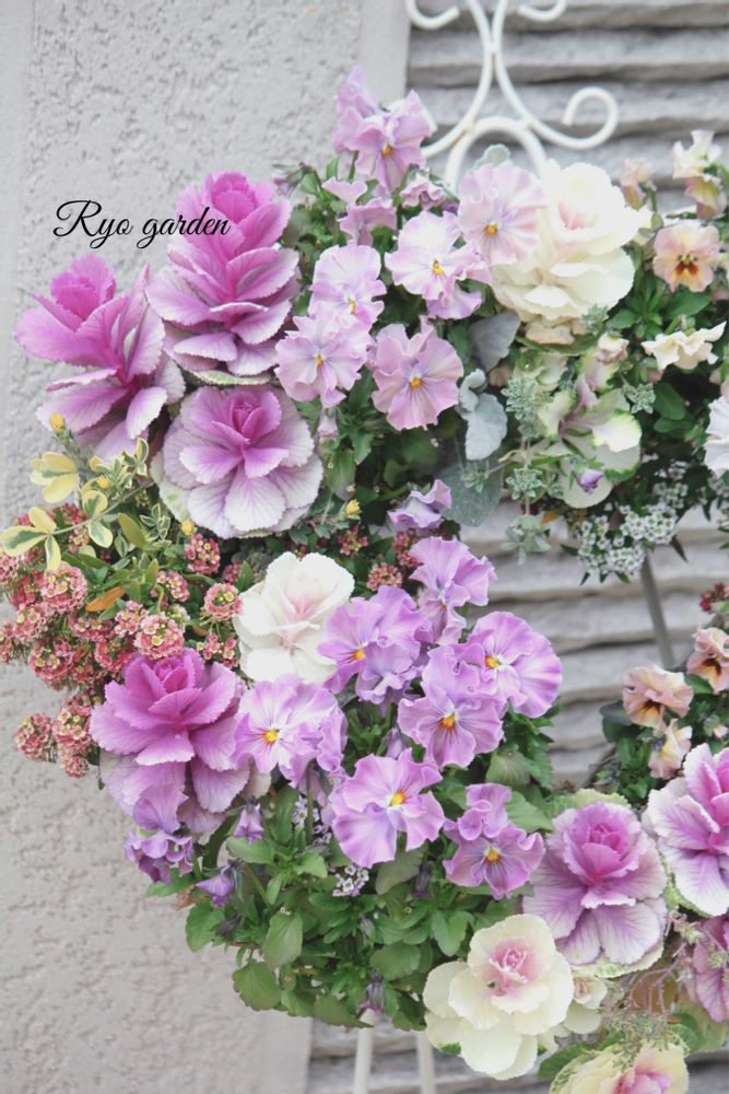 葉牡丹に、桂楓園さんのパスフリ 3株、R-ガーデさんのミニフリルパンジーパステルシャボン2株、葉牡丹、アリッサムが入っています🌸