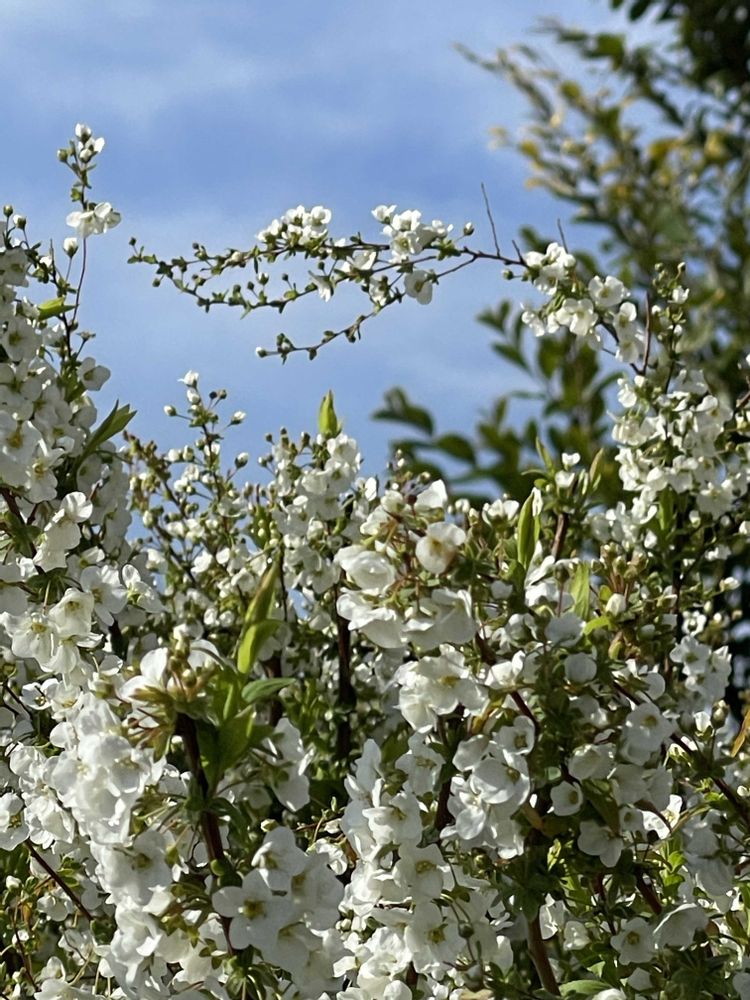 爽やかにユキヤナギ。上の方はだいぶ咲き揃ってきました🤍