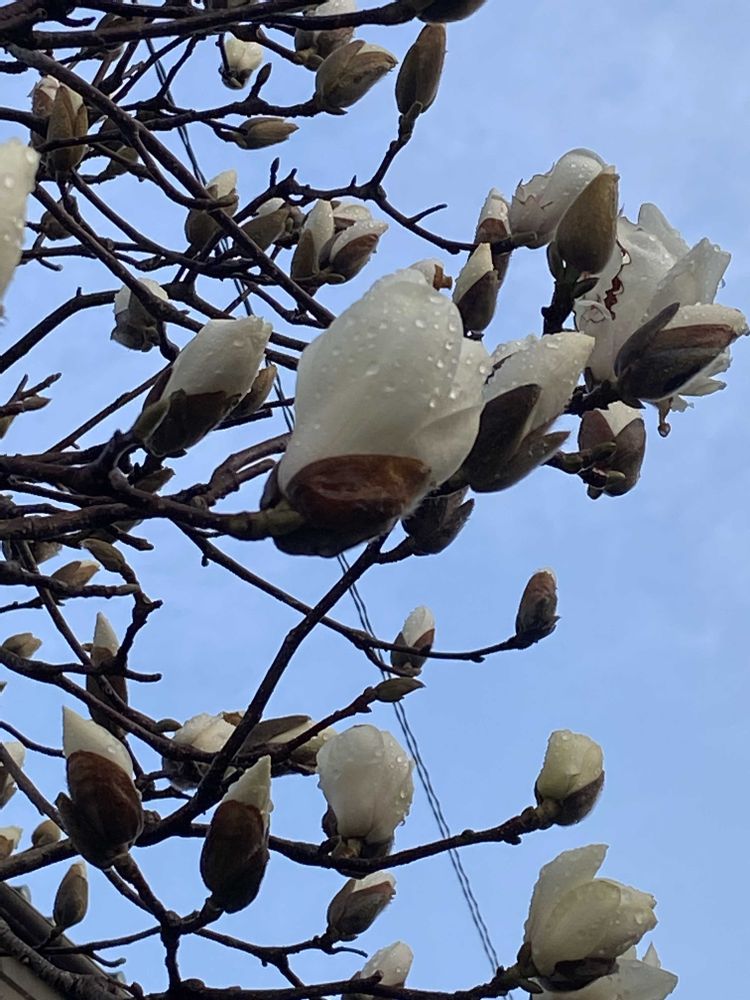 ウチのお客様の庭のモクレンは咲く前にムクドリに蕾が食べられてました😓