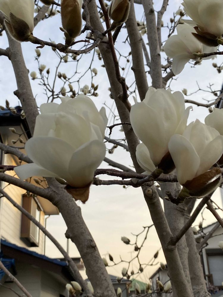 ハクモクレンのお花が開いているのが分かります🤍🎶🎵