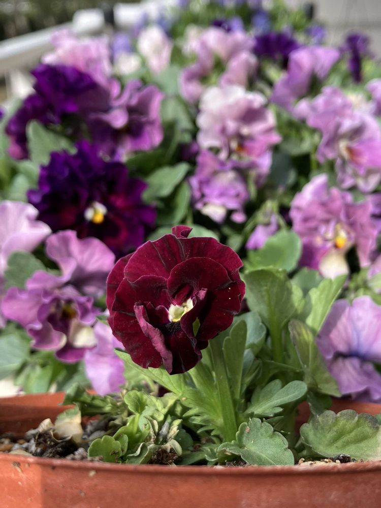 赤というかボルドーのベルベットのようなビオラが咲きました
