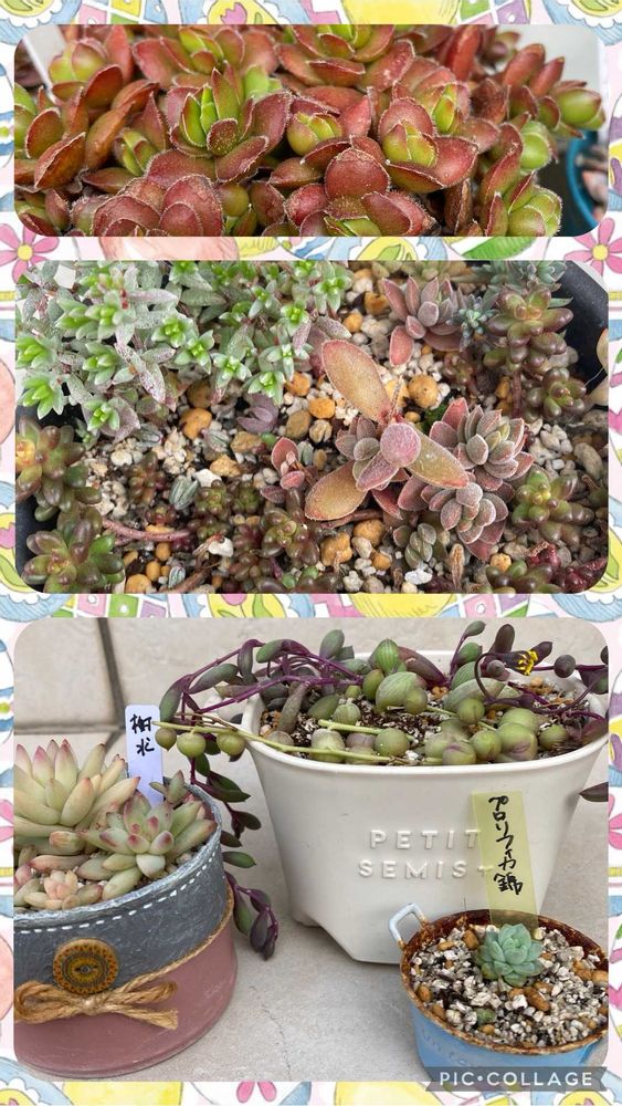ネックレス系をのびのびの子をまとめて、スッキリ😊またすぐ伸びるけど😆プロリフィカ錦さんは、もう小さな株になってしまって、あまり日に当てすぎないように気をつけて、増やせるようにがんばりたいです👍↑はセダムの色々何が何かわからない💦でも元気です🎵いっぱいになったらまた考えます☺️↑は緑が見えて動き出してるディビットさん🥦