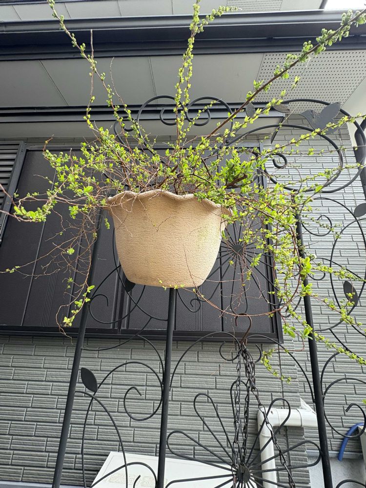 植木鉢🪴だと枝が横に広がり邪魔になるので引っ掛けて飾る事にしたらいい感じで少し成長して3年目