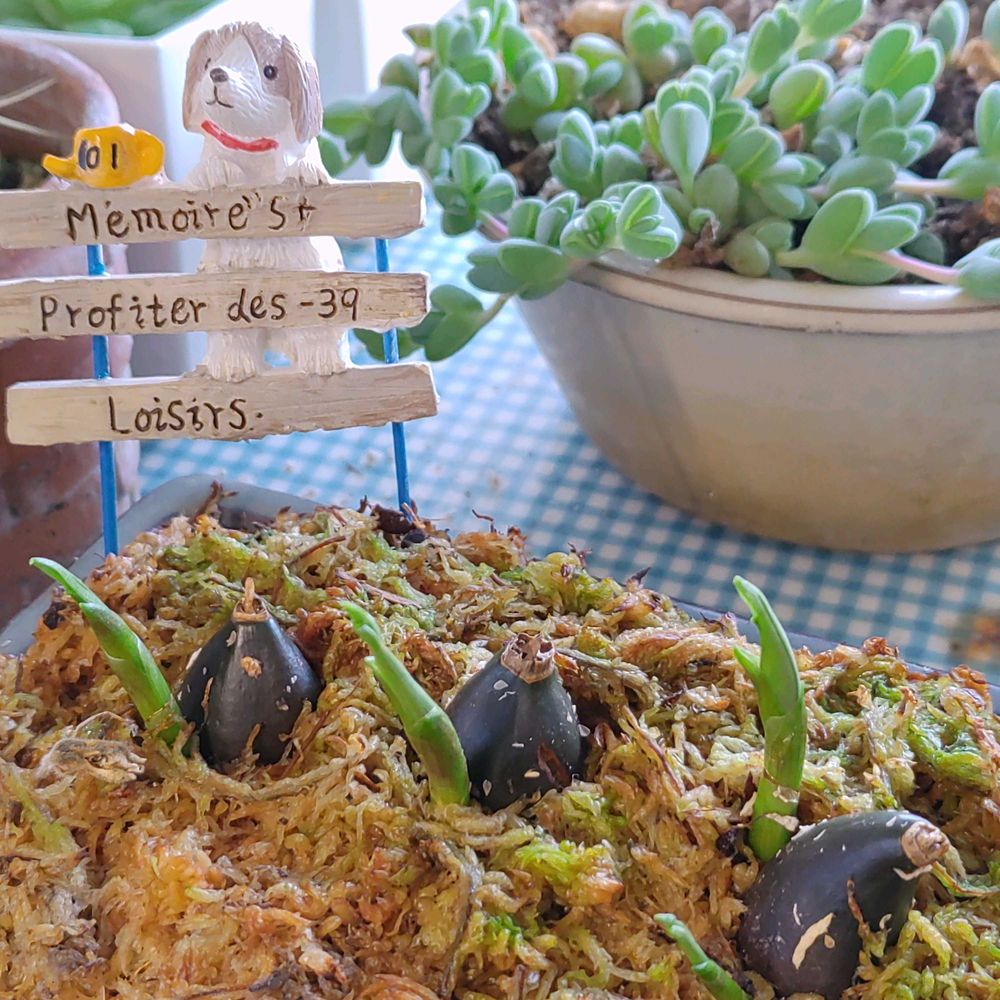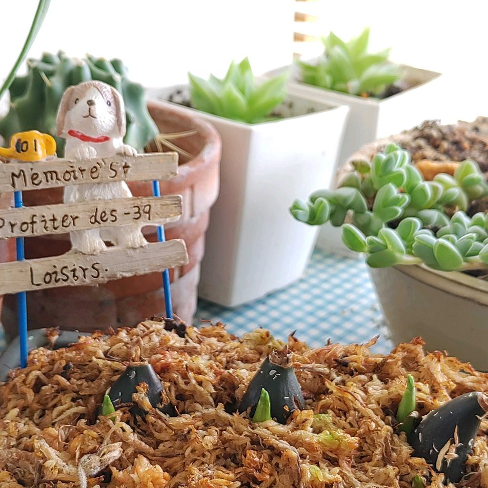 1月に一個100円位のトキの🥚を3個水ごけに埋めてやっと蕾に色が付いてきました😊