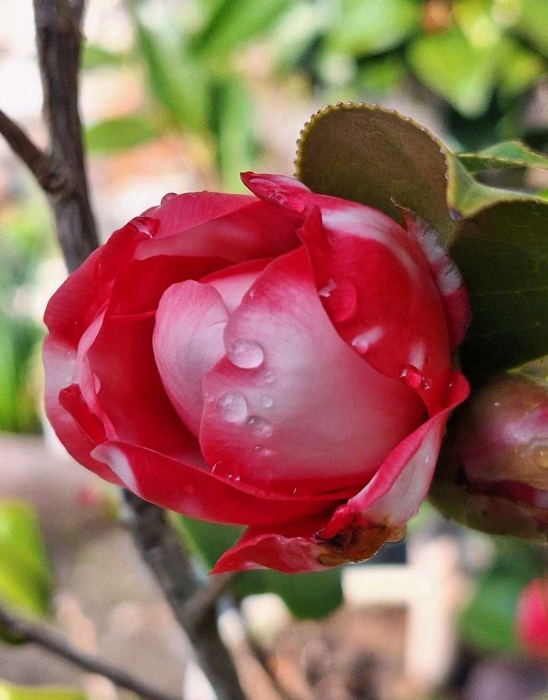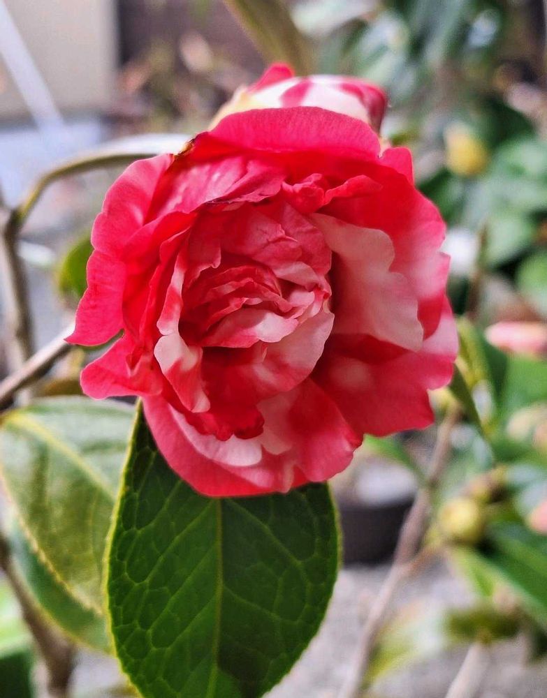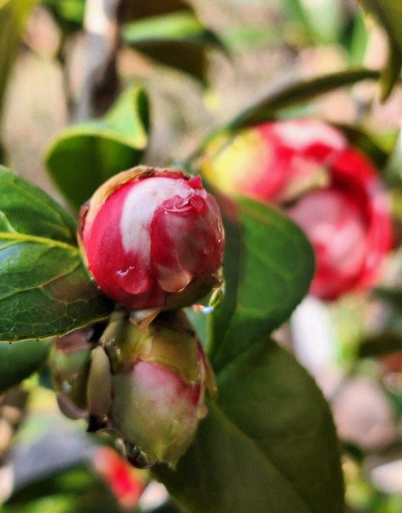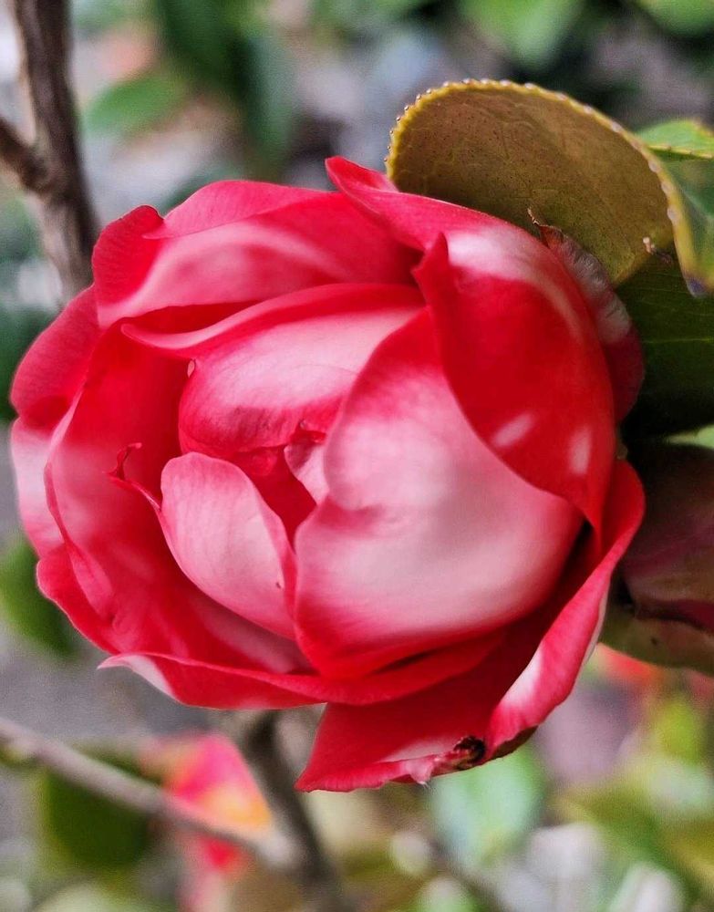 昨日の朝まで蕾だった椿「春日山」❤️🤍