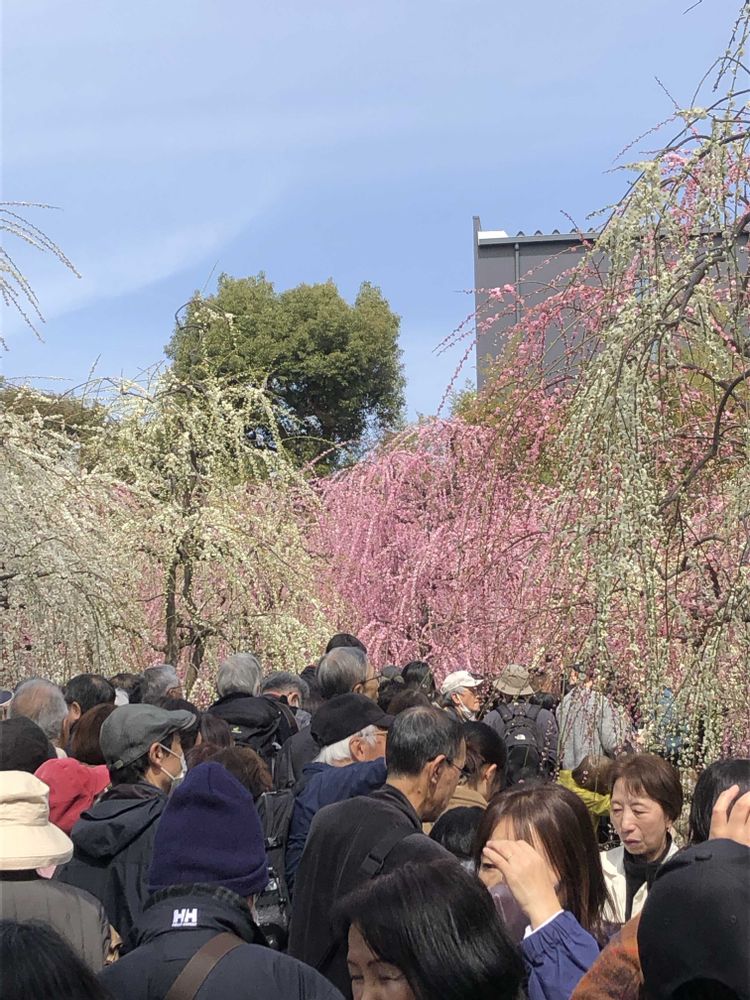 昨日はお天気も良く、枝垂れ梅の満開ピークの時期でしたので、大勢の参苑者でした。💦