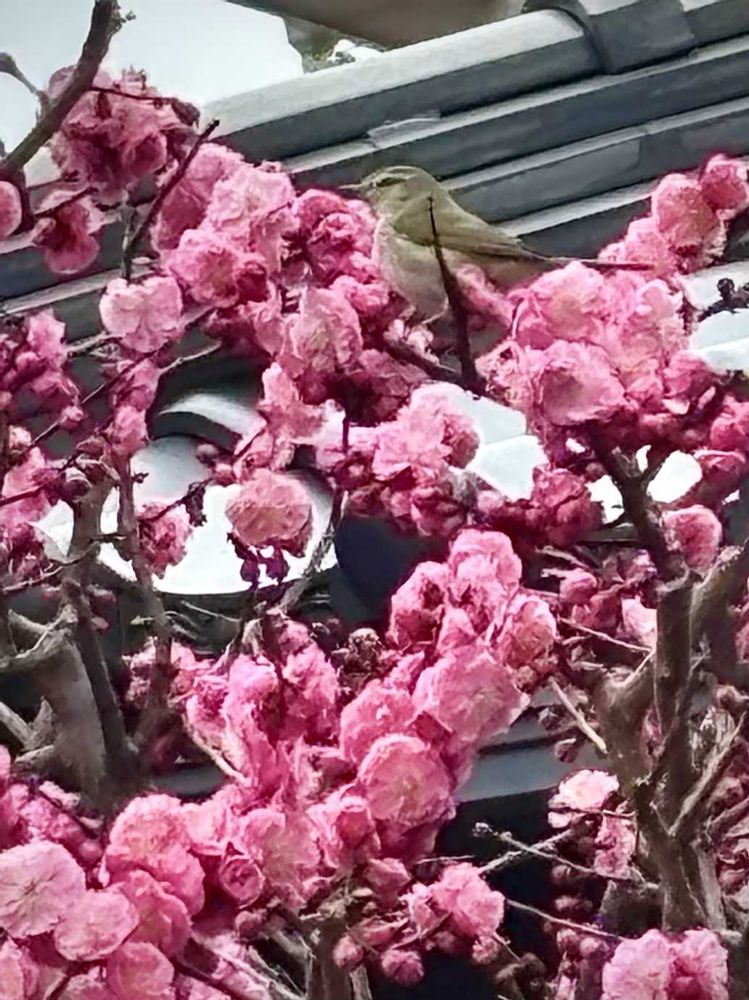 ②ウグイスだよね⁈紅梅の蜜飲んでる❣️