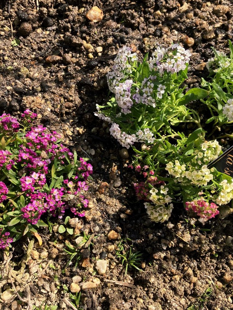 アリッサム 白、ピンク 紫と一株に咲いていて可愛かったので我が家の一員になりました‼️