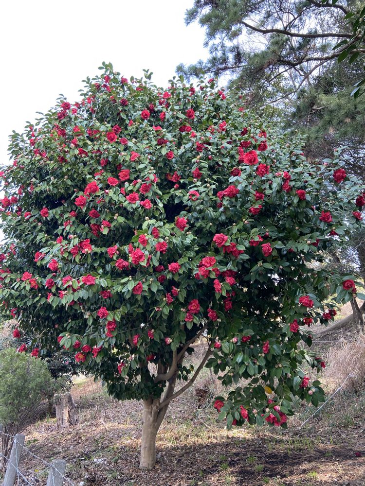 幼稚園の近くの道路に多分紅白の椿が見事に咲いていたので思わずパシャりました😆