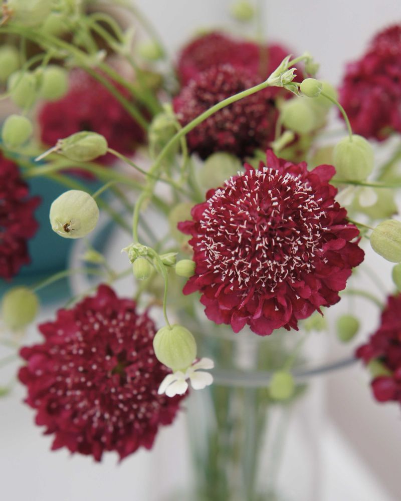 シックなボルドーカラーのスカビオサが目に留まり、お持ち帰りしました☺️