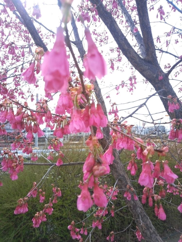 良いお天気で、線路沿いのかんひ桜の並木道が、春の日を浴びて綺麗でした。