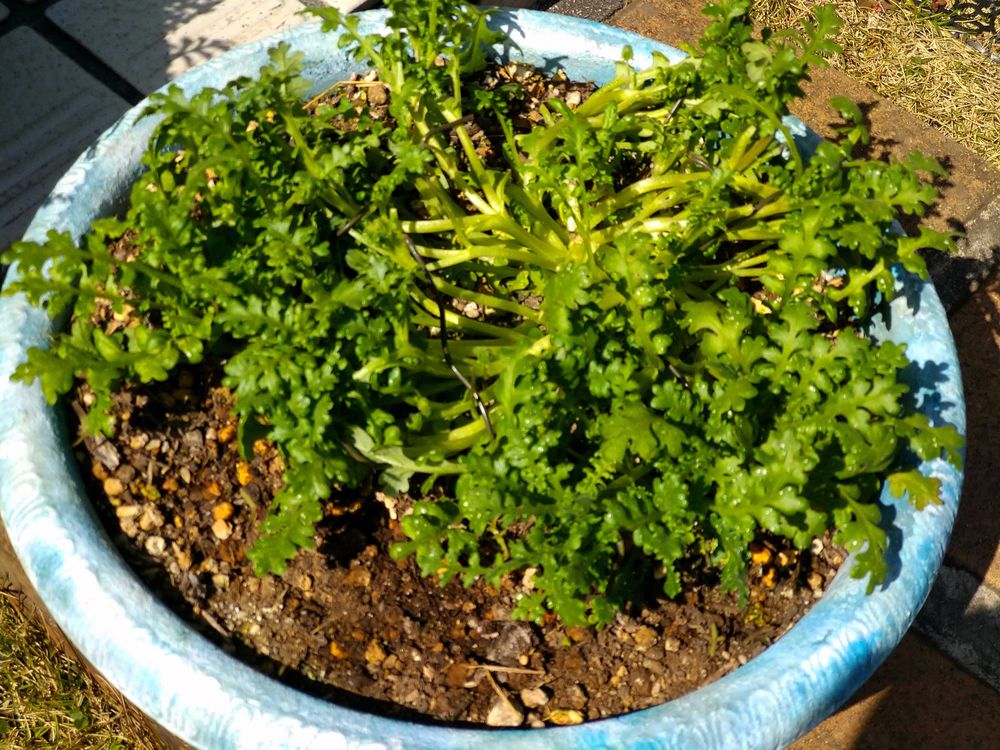 茎の長さは既に最長で20cm位になりましたが、ワイヤーで押さえ込んで高さは10cm以下です!