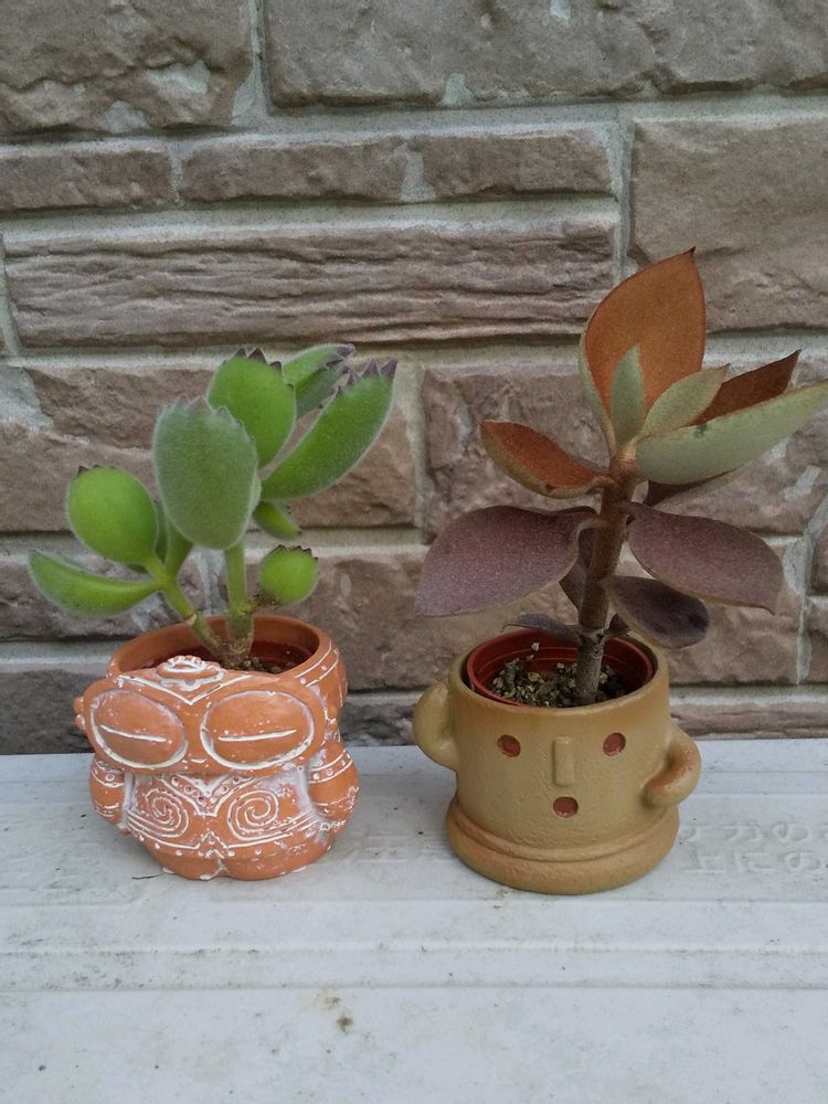 ホームセンターで多肉植物の`熊童子´と`仙人の舞´と土偶とはにわのポットを購入しました。