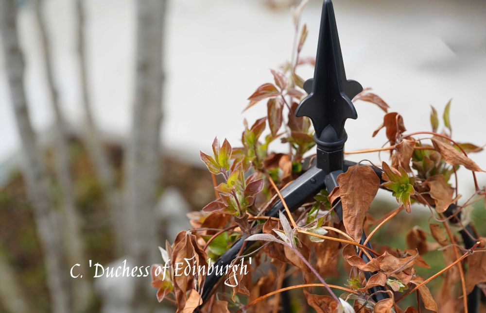 昨年伸びたツルに咲く「旧枝咲き」。剪定は、先端から1~2節くらいのところで切る。と書いてあるけど、