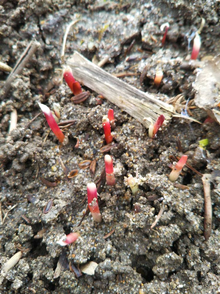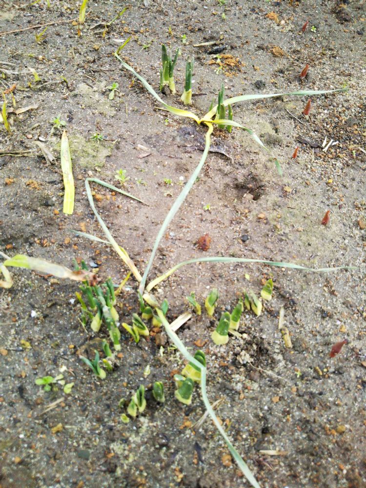 <地道投稿>寒の戻りになる予報に😐️我が家の春の新芽です😄1️⃣家庭菜園の「にら」植えてて(赤芽)初めて知りました2️⃣花壇の「水仙」今年は少し太いような気がします。3️⃣「ブローディア」秋に種初めて植えました。4️⃣鉢の「福寿草」二日前囲いから出しました、今日鶴岡「麦や」さんに少しお化粧してボランティアします🚙セロジネ満開でした。5️⃣小鉢「ホタルブクロ」順調に成長、どれも楽しみです😄