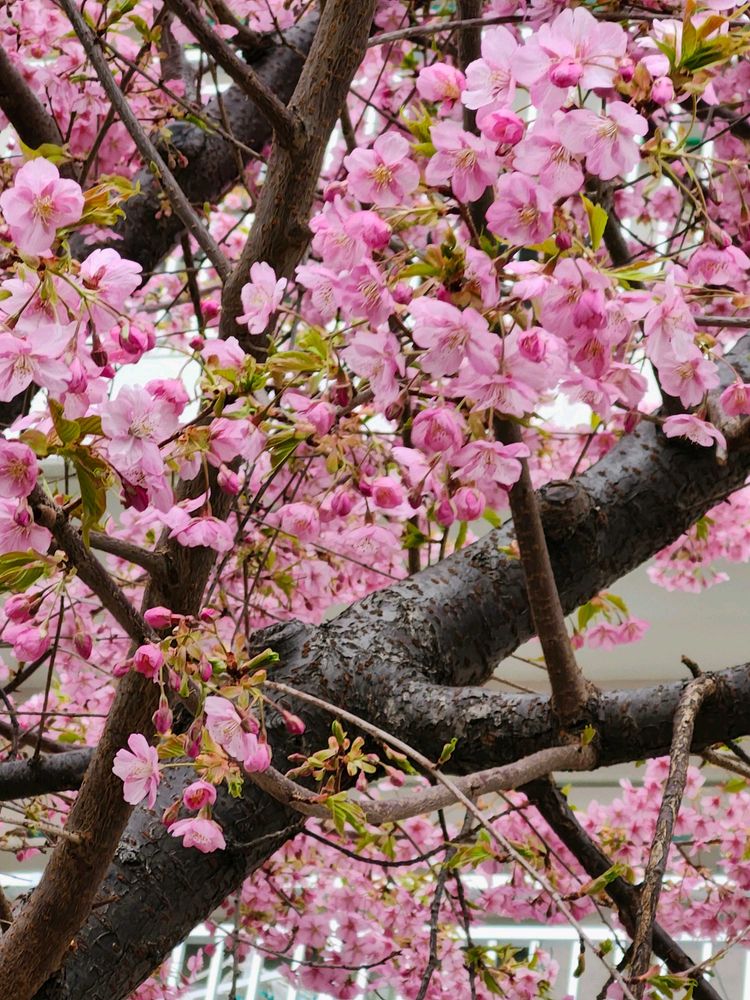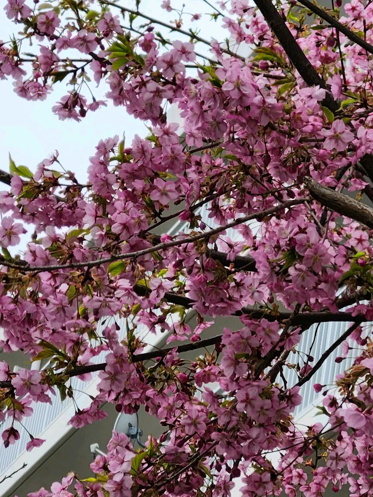 近くのマンションの河津桜が、満開でした。