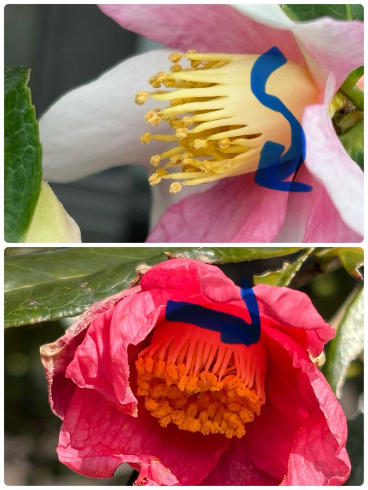 うちに元々ある椿は紅卜伴以外は真っ直ぐだと思ってたんだけど、改めて見ると違うのかなぁ?😅