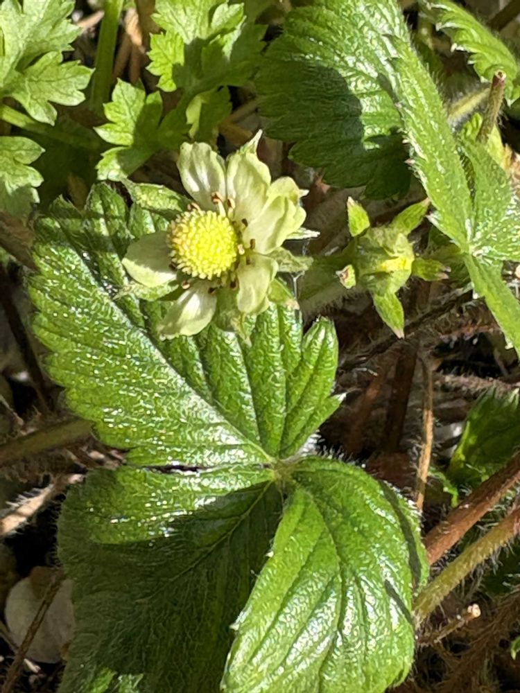 3枚め:強剪定後の緑っぽいワイルドストロベリーの花