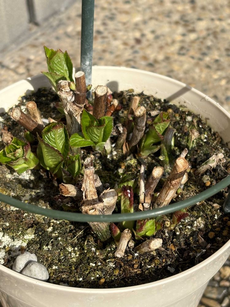 アジサイも芽吹き始めて強剪定しても大丈夫な株なのね🪴