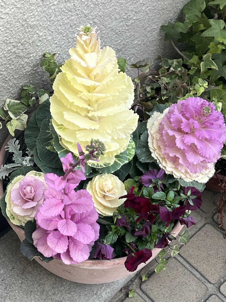 今年の葉牡丹はいつもの年より、なんかこうコロンと丸くかわいく伸びたなぁ・・と