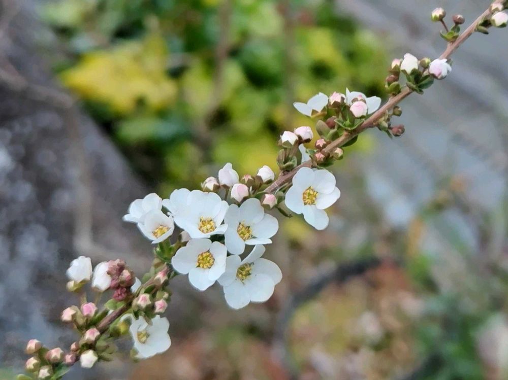 桃色雪柳。蕾は丸くてピンク色ですが、開くと白さが際立ちます。脇役も主役も似合います🍀