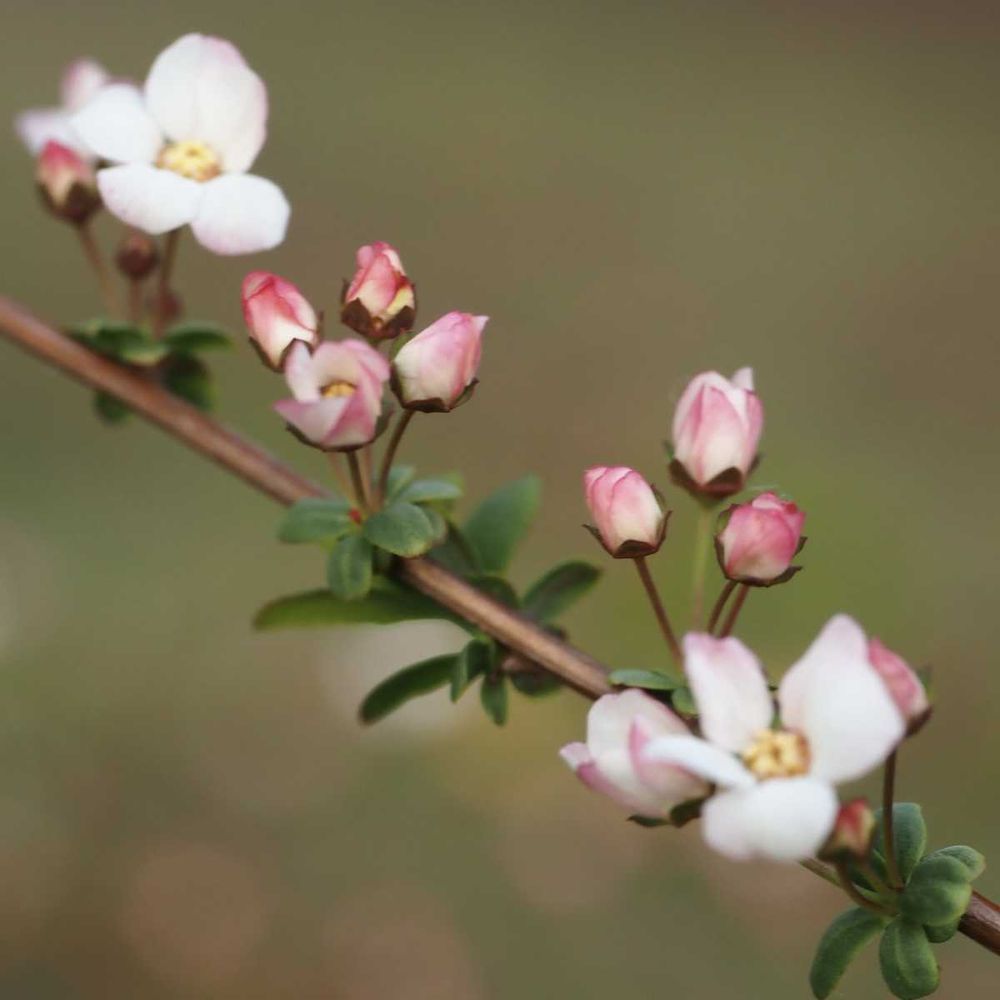近くの公園に咲いていた蕾が赤いユキヤナギです