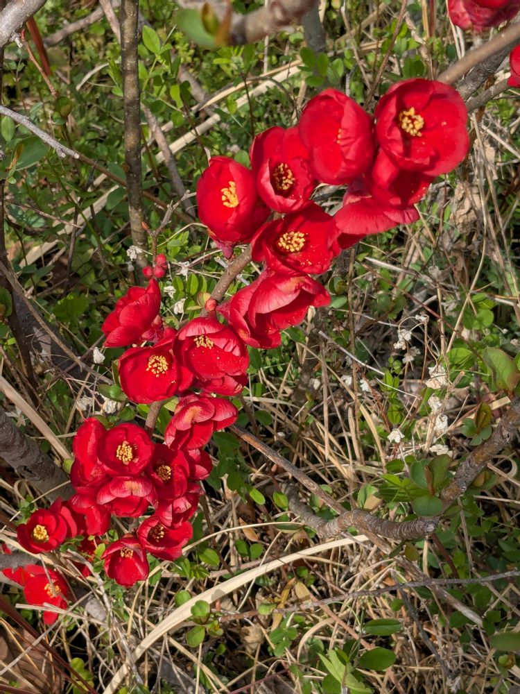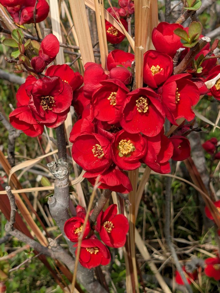花壇で密集してモリモリと咲く木瓜の花見応えありました🤓🙌