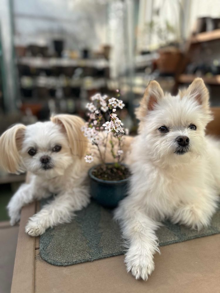 風が強い中、たんぽぽ🐻❄️、ニコ🐶がモデルさんで久しぶりの登場です🐻❄️🐾🐶🐾