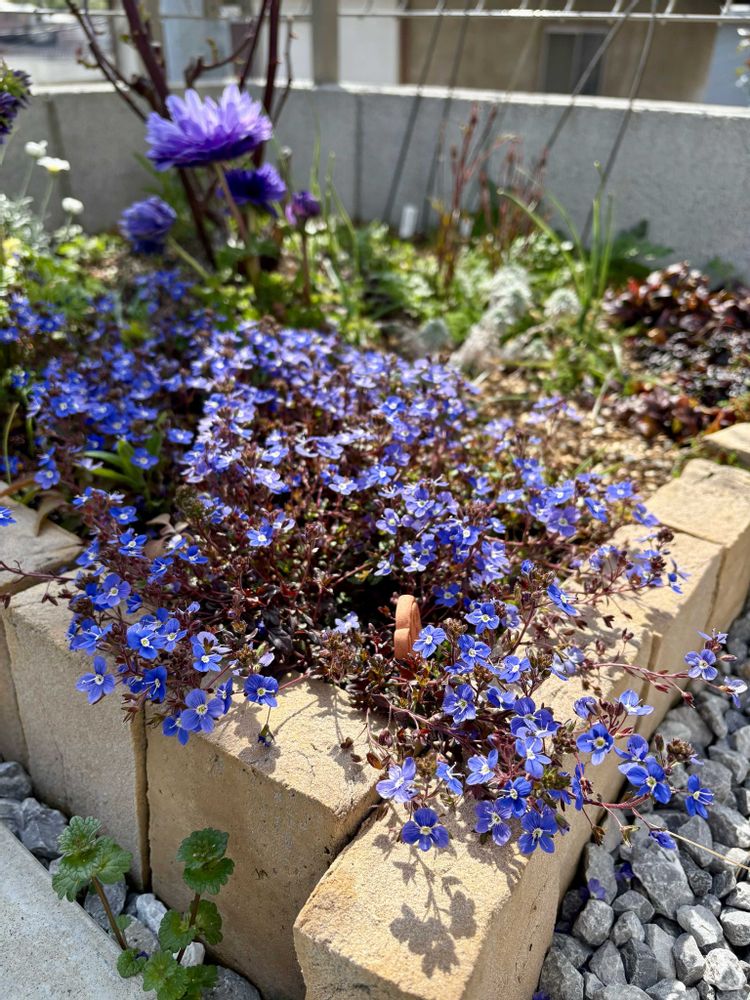 深い青が美しい。一月に足したオックスフォードブルーが満開。蕾はまだまだあるのでしばらく楽しめそう。宿根草は冬の間に植えつけた方が春に調子良く咲いてくれますね。