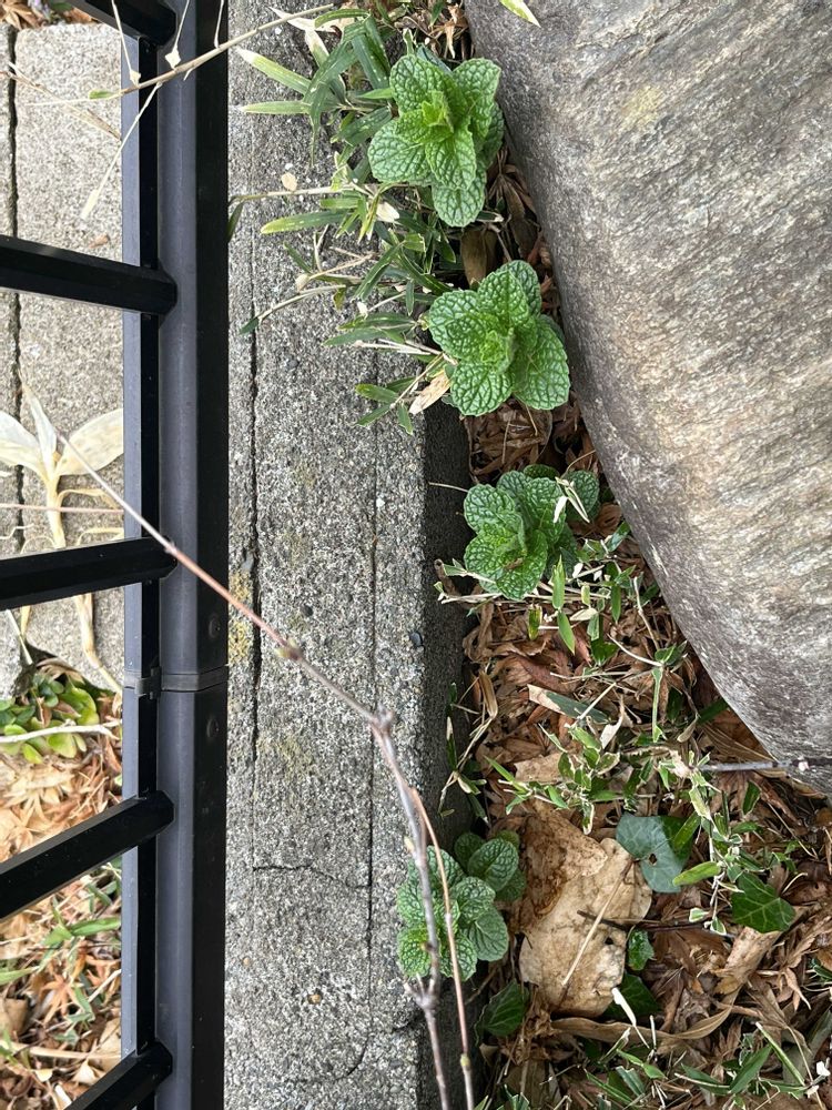 ⑤フェンスと岩の間からど根性ペパーミントが出てきました