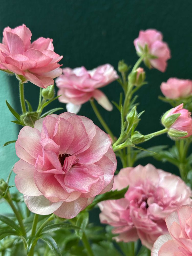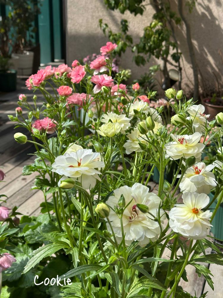 昨日までの暖かい陽気で一気に咲き進みました。ラナンキュラスラックスのピンクのヘラと白のニノス、お花が大きめで6センチくらいあります💕ニノスは白に紅色のラインが入ります。スプレー咲き。