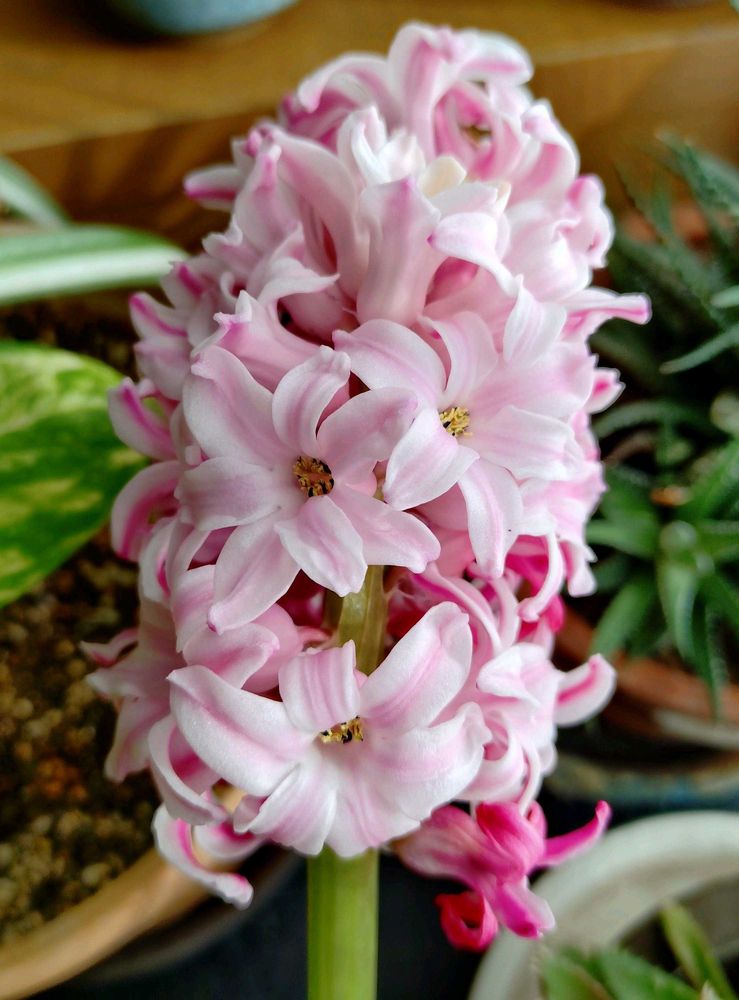 水栽培したヒヤシンスの満開の頃。倒れ気味で😆苦労しました🤣1月25日撮影。