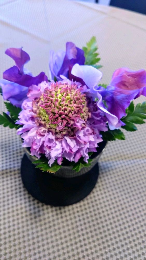 イベントの仕事で用意したテーブル花で、スカビオサとスイートピーのコラボ✨✨‼️
