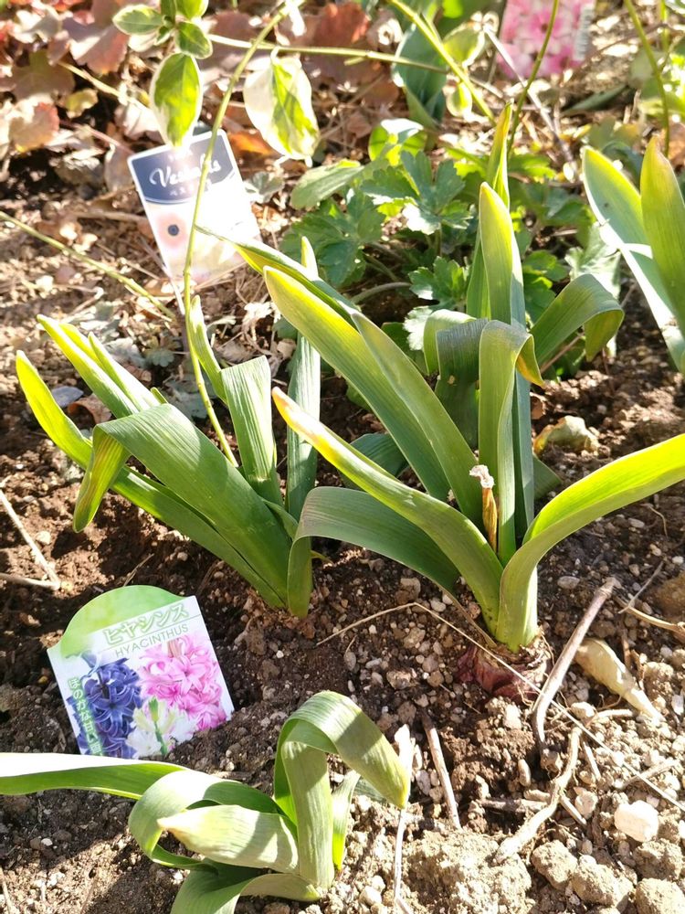 現在10株の新しく買ったヒヤシンスはお顔を出した所です。