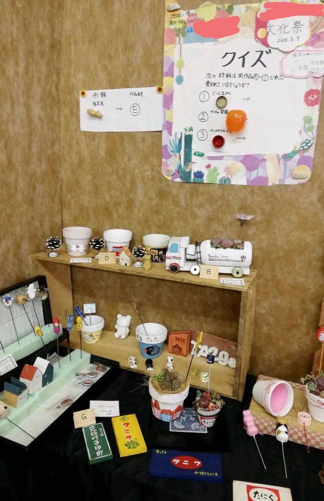 作品も 当日庭や部屋に散らかってるの集めて なので こんな感じ😣(展示の一部分の写真です🎶)