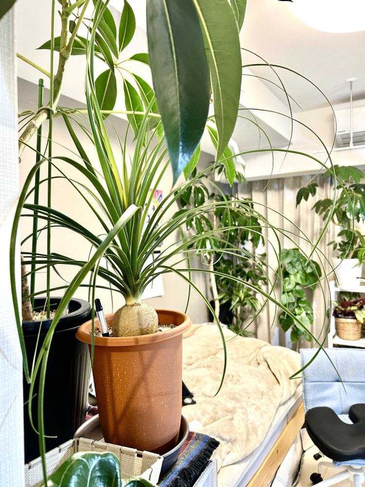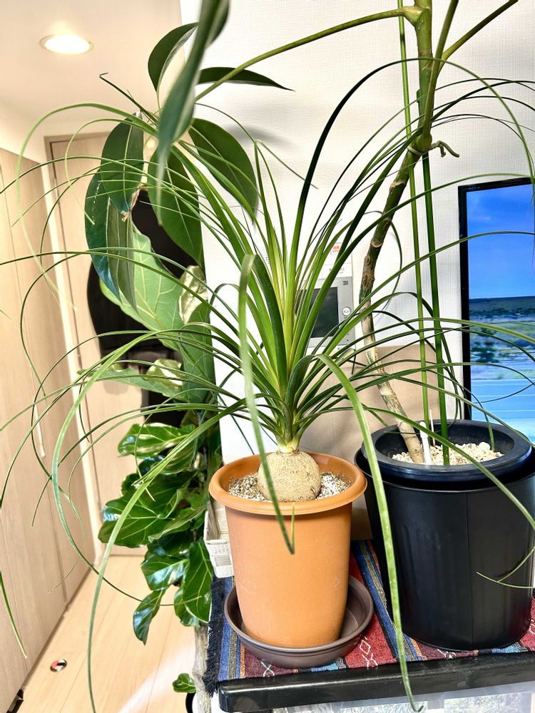 ポニーテール(トックリラン)は葉っぱのカールがとっても可愛らしく見てるだけで癒されます😊高い場所に置くとより一層それが生かされます😊