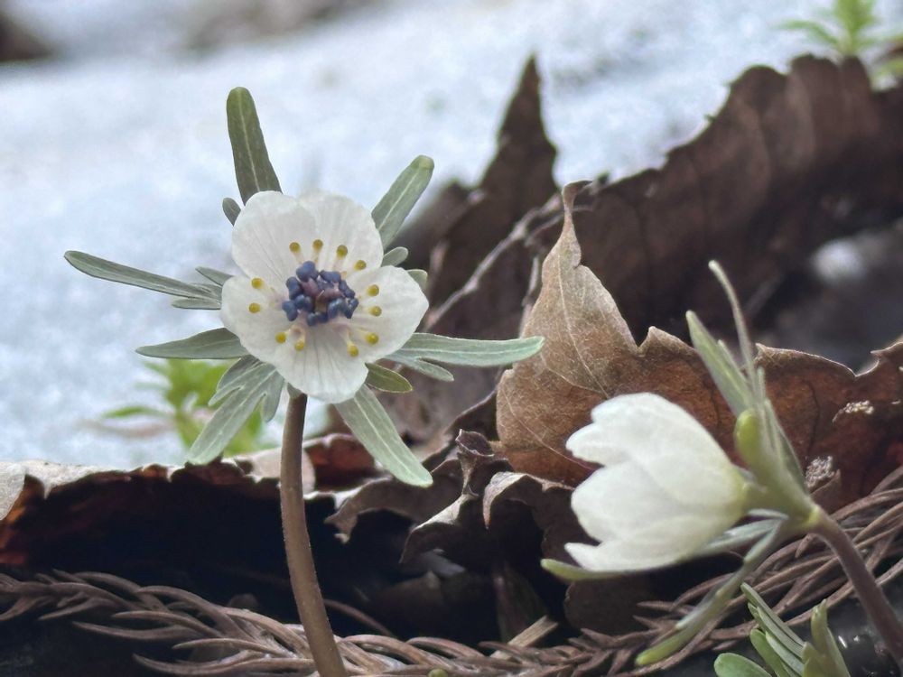 雪の間から十数輪咲いていたセツブンソウに会えました💕