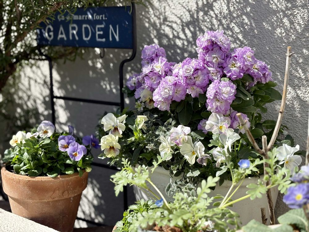 パンジーとの寄せ植えのストックが、いつの間にかモリモリに❣️