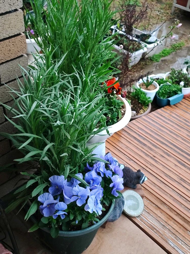 本日も雨。動物には寒いですが植物にとっては恵みの雨ですね。ヤグルマギクとパンジーの寄せ植え、数日前に1つ鉢増しして下の方の通気性が良くなるように掃除をしておいたら、更にパワーアップしてました。花が咲くまでも、葉っぱもこんなにキレイな植物だとは知りませんでした。