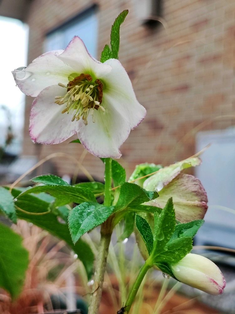昨日ホームセンターへバラの挿し木苗用のロングポットとかセントポーリアのミニカップとか買いに行った時に、クリスマスローズが全品半額処分になっていまして…どれも非常に状態がよく、大型で根っこもポットがボコボコになるくらいで…花の色で悩みましたがピコティを1株購入。かすりっぽいピコティ&クリアな白が色っぽくて気に入りました♪さっそくポットをハサミで切って、鉢増ししておきました。これからよろしくね。
