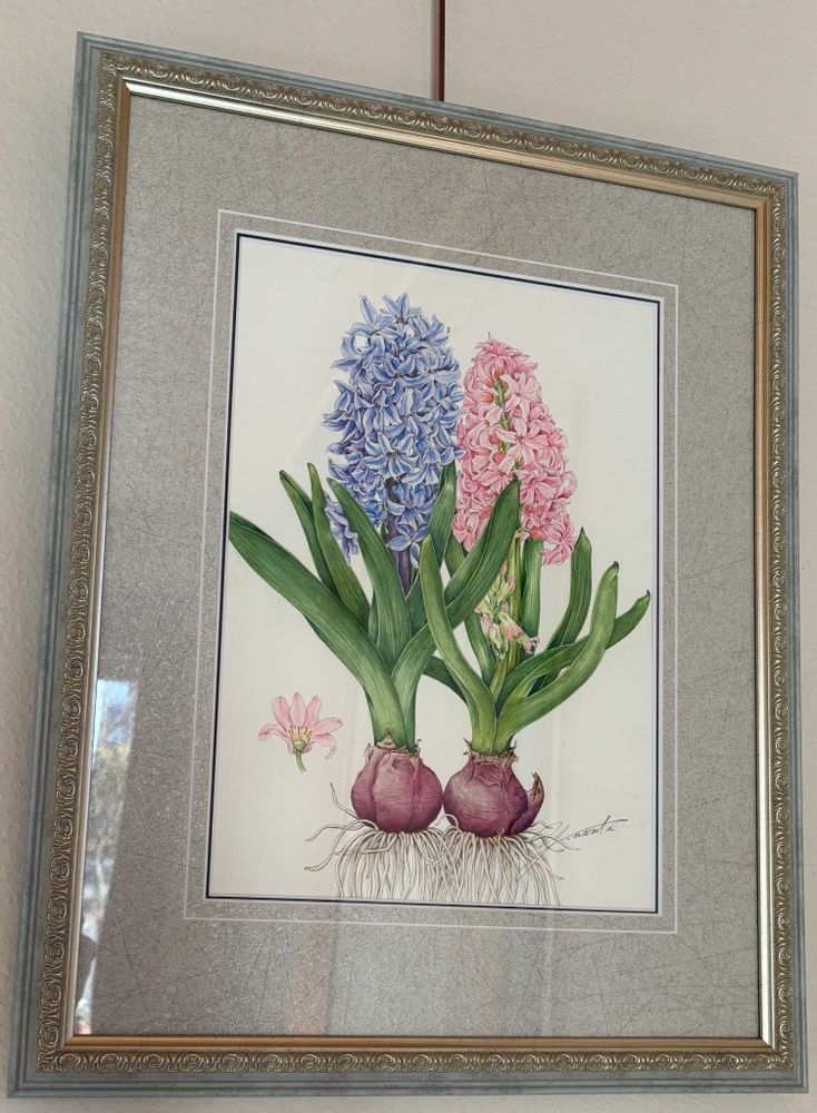 ①知人の描いたボタニカルアートです。かかりつけ医院の玄関に飾られていました。昨年、彼女とご姉妹の作品展を見に行きましたが、どれも素晴らしいものでした💗