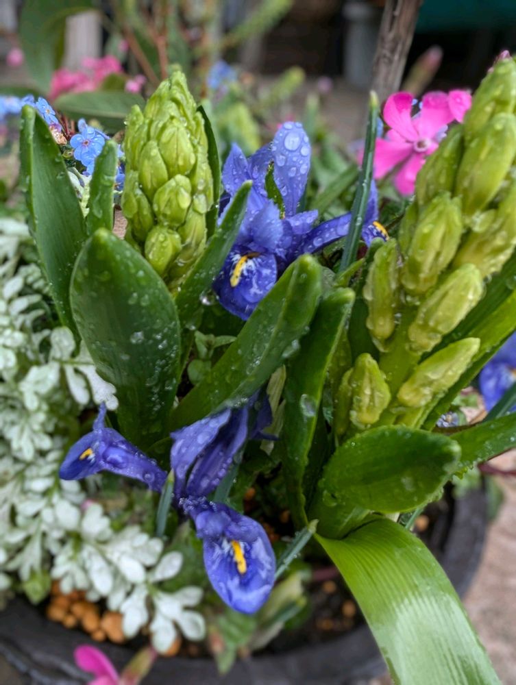 ヒヤシンスは球根植えたけど咲きそうになかったので蕾の上がりそうなのと変えアイリスは咲き終わってしまいました🤭