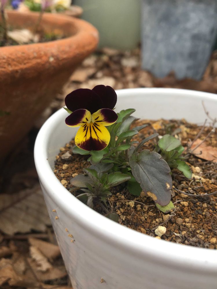 ①ずっと葉っぱ🌱と蕾だったビオラが咲いた!可愛い色❤️