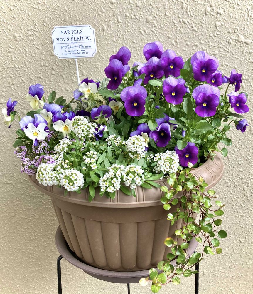 わくわくな寄せ植えだぁ〜💜🤍🌿