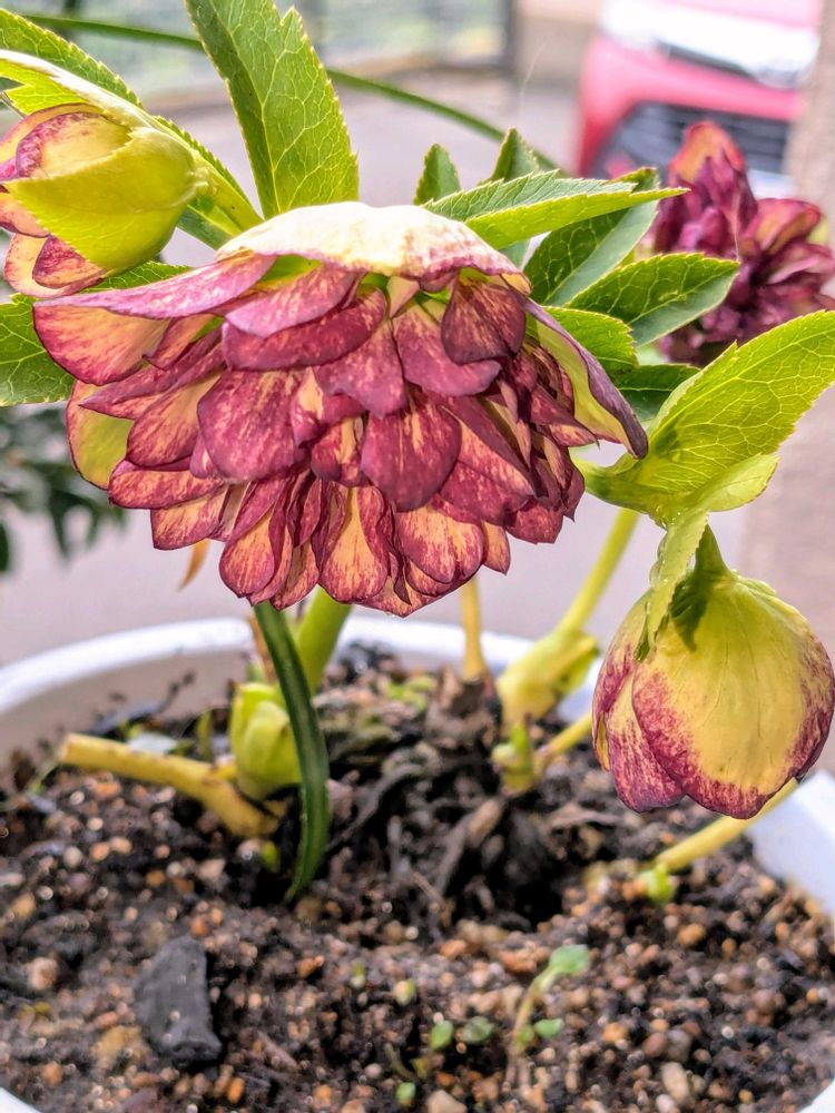 クリスマスローズの苗に惹きつけられて買ってしまった。💕🩷誘惑に負ける〜(笑)