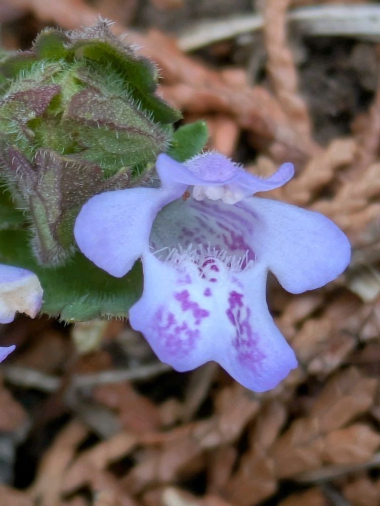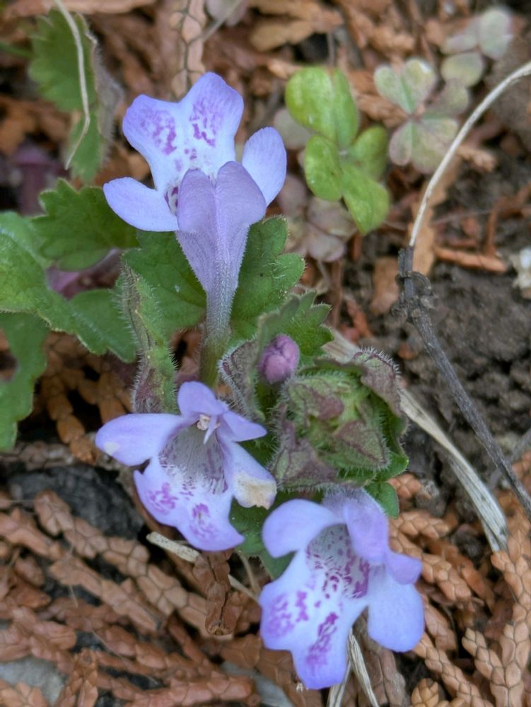 日当たりのいい山の斜面にカキドオシの小さな花が咲いていました